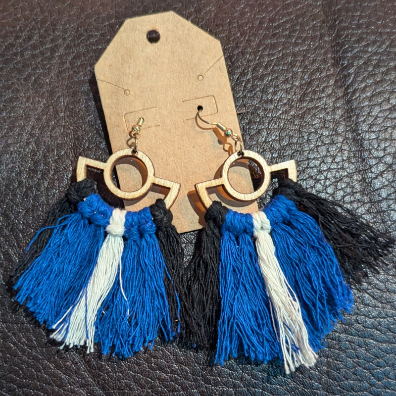 Earrings are made of 3mm Baltic Birch and colored macrame cotton rope with hypoallergenic hooks.